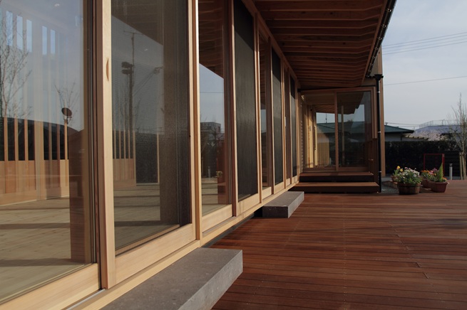 ウッドデッキ:素足で走ったり、寝転がったり、思いっきり遊べる空間