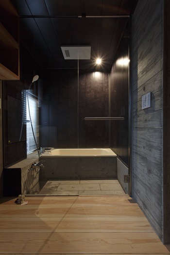 玄関:竹照明 浴室:
