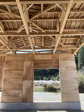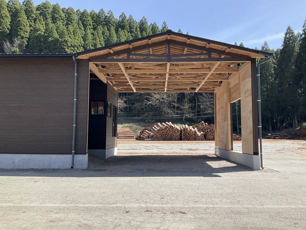 ・E70以上の材料強度を活用した8mスパンをキングポストトラスにて、選木機械を覆う屋根を構成